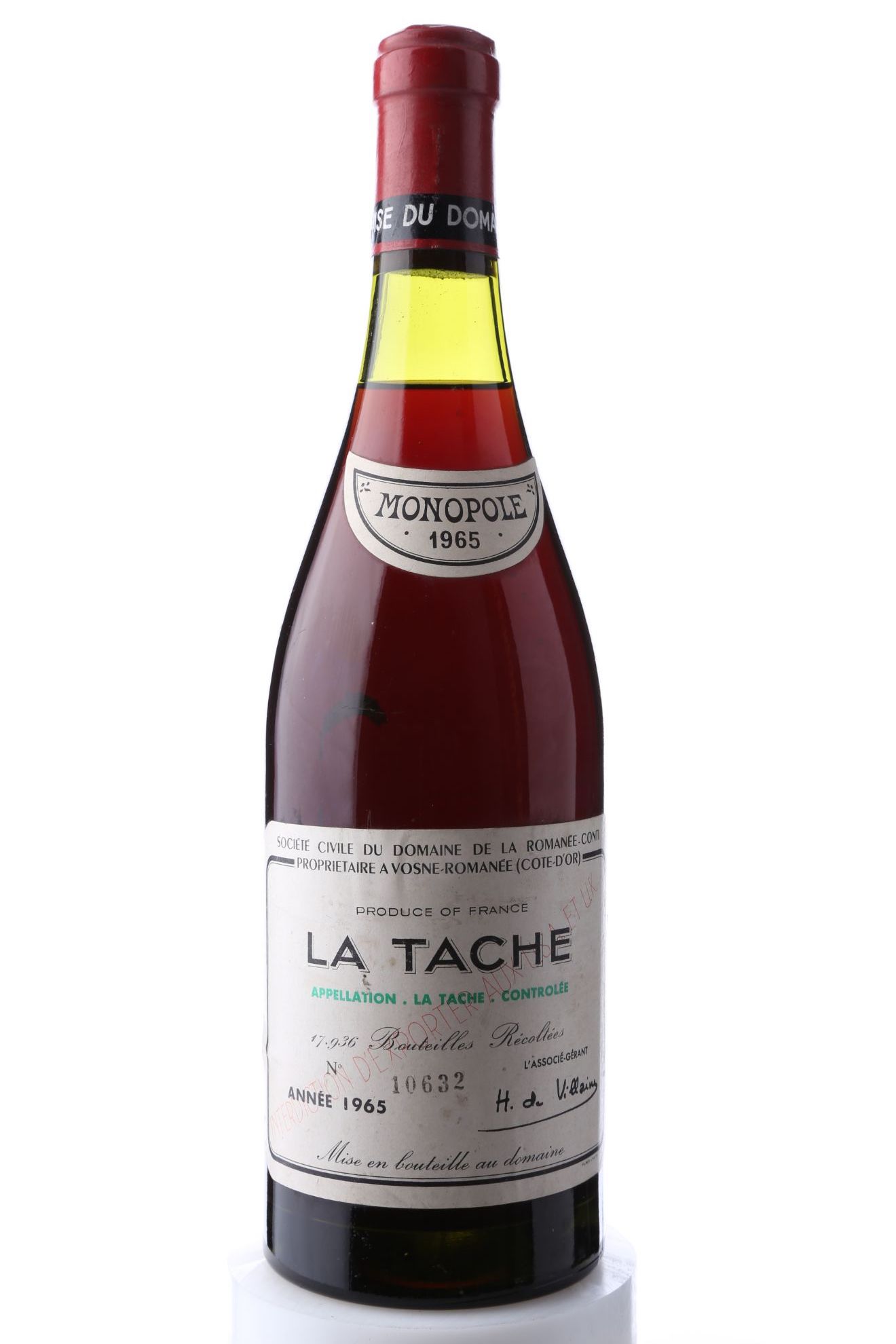 La Tâche1965 · 0.75l · Nr. 10632FrankreichBurgundCôte de NuitsDomaine de la Romanée-ContiGestohlen: 9. Juni 2015